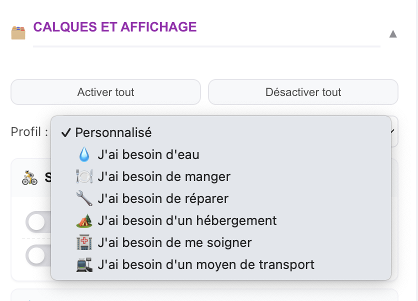 What makes the tool particularly practical is its quick profile system. Need water? One click on “need water” and only cemeteries, fountains and water points appear. Want to eat? The “eat” profile displays grocery stores, bakeries and restaurants. This targeted approach avoids information overload and allows you to focus on your real needs of the moment.